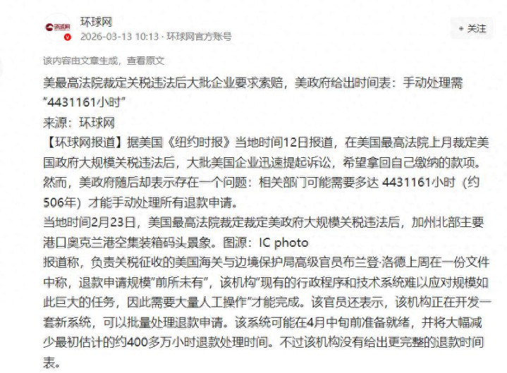 这么多企业要索赔,说退税有困难,流程会很长,那是肯定的,毕竟这件事殃及整个美国,但当初收税入账都用不了一年,退个税却要退500年,任谁都能看出来,美国政府这是在玩心眼子。